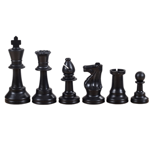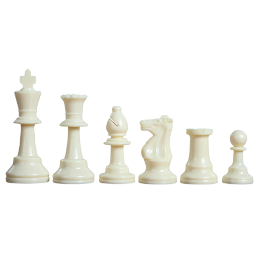 Figury plastikowe, nieobciążane metalem, pakowane w foliowe woreczki strunowe. Figury w kolorze biało/czarnym, wysokość króla wynosi 96mm. Figury te idealnie pasują do szachownic składanych.